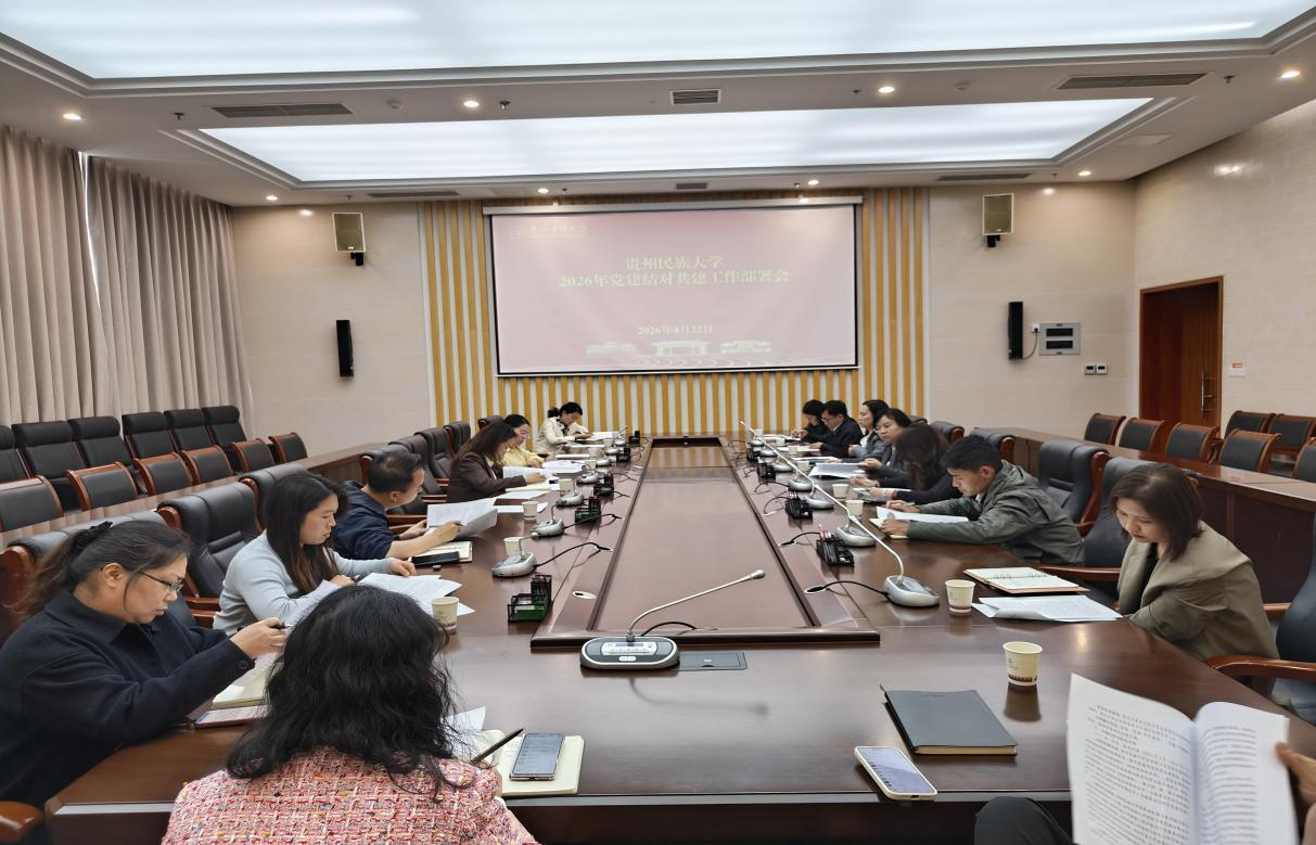 2026年4月22日,贵州民族大学2026年党建结对共建工作部署会召开。校党委常委、组织部部长陈懿主持会议并讲话,各相关单位主要负责同志以及工作人员参加会议。